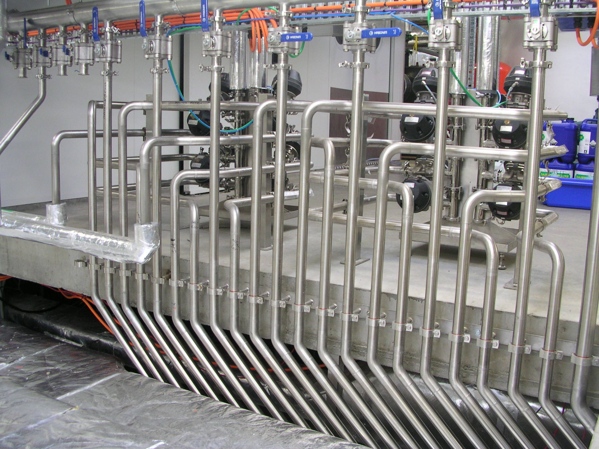 Our workshop fabricates the internal access platform, stainless steel wall plates, wall & ceiling plates for the build. The platform is built in sections for installation as it surrounds each of the tanks, electrical cabling is run through the platform & junctioned out through stainless steel conduits to the termination points.