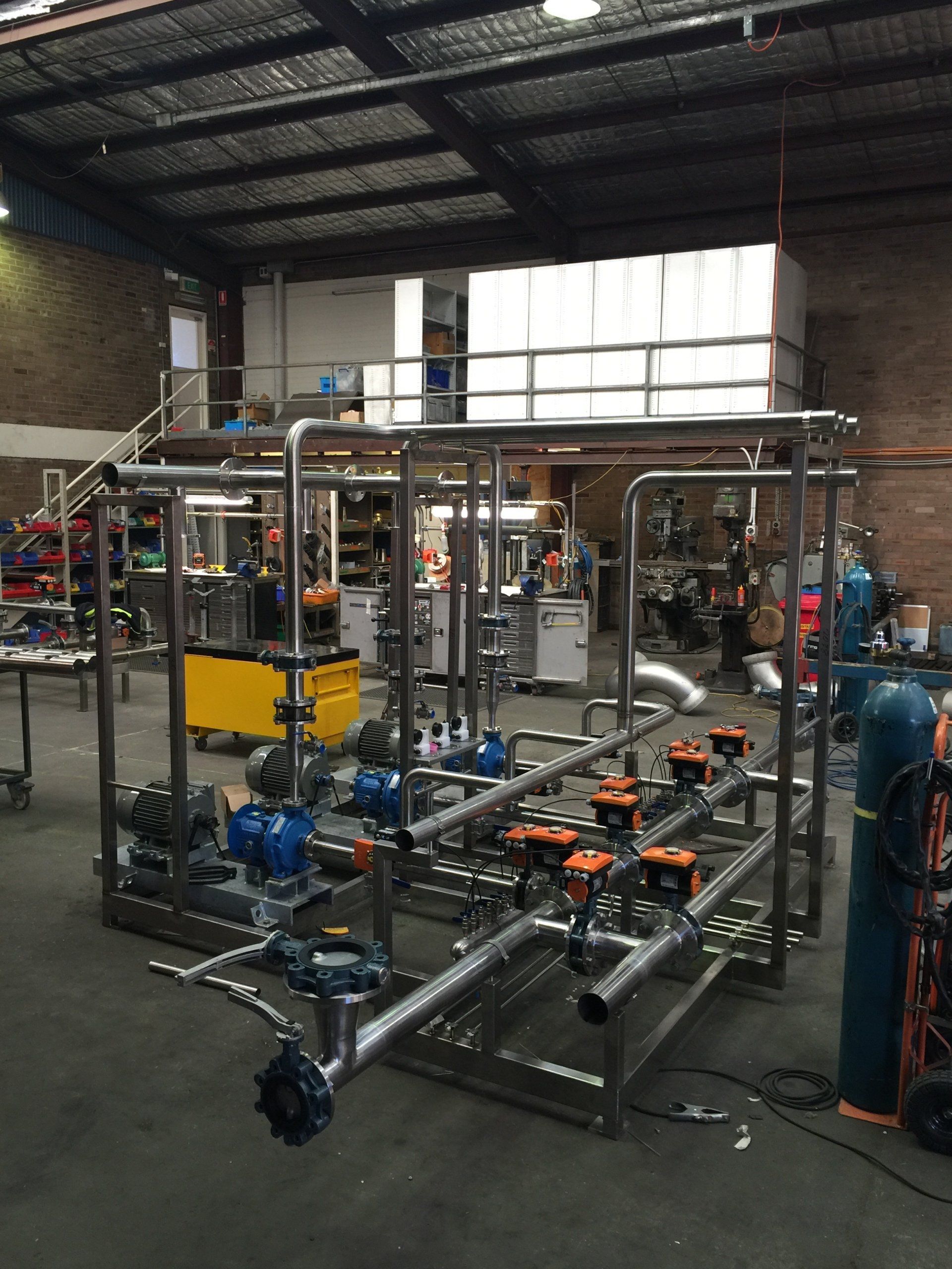 Variety of Pharmaceutical, food, beverage and industrial grade skids and manifolds fabricated and code.